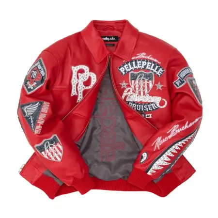 Pelle Pelle American Bruiser Red Jacket | Authentic Leather is a legendary streetwear masterpiece designed for those who want to stand out with confidence. Known for its bold embroidery, premium leather construction, and unmissable red finish, this jacket combines authentic Pelle Pelle heritage with modern street fashion.